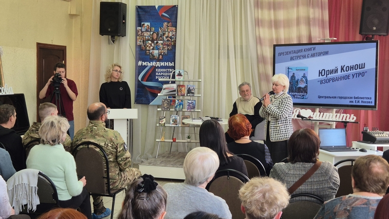 10 февраля в Центральной городской библиотеке им. Е. И. Носова прошла презентация книги Юрия Коноша "Взорванное утро". Сборник произведений посвящен 80-летию Великой Победы и 3-й годовщине воссоединения Донбасса и Новороссии с Россией. Автор, уроженец Донбасса, представил книгу, в которой особое внимание уделено судьбам жителей региона с первых месяцев специальной военной операции.